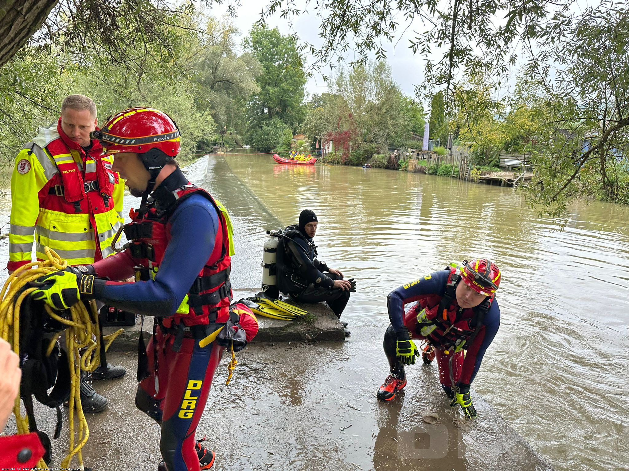 Insgesamt waren bei 160 Einsatzkräften rund 51 DLRG Kräfte vor Ort. Weitere Kräfte befanden sich bei uns im Hintergrund bereits am Aufbau der Verpflegung und der Möglichkeit, Tauchflaschen wieder zu füllen.