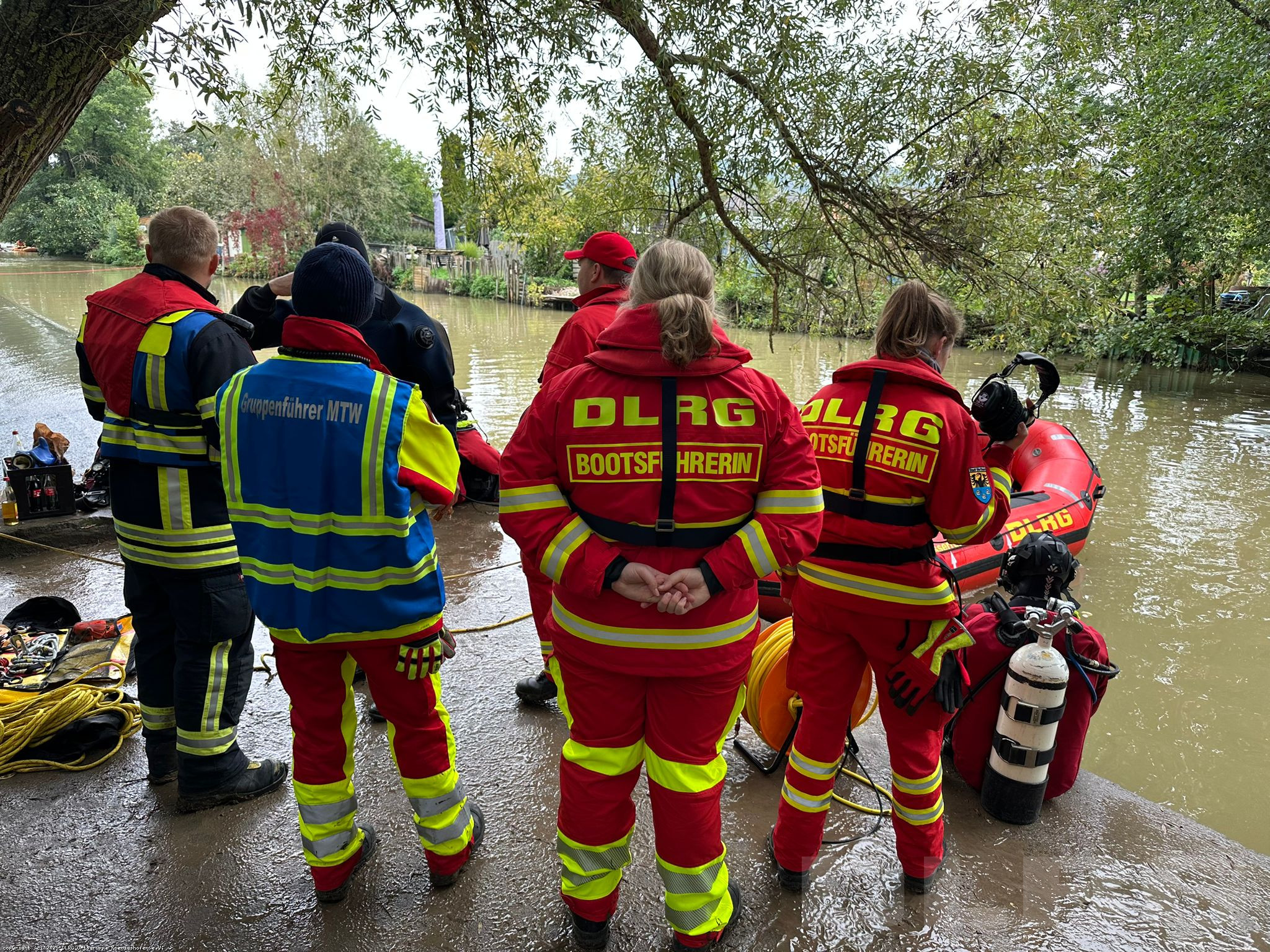 Im weiteren Verlauf wurde durch die örtliche Einsatzleitung weitere Einheiten an die Einsatzstelle angefordert, sodass auch die DLRG Gruppen Wertheim und Freudenberg alarmiert waren. Neben den DLRG Gruppen waren auch mehrere Abteilungen der Freiwilligen Feuerwehren Lauda-Königshofen und Tauberbischofsheim, die Berufsfeuerwehr Würzburg, das DRK, THW Igersheim, die Rettungshundestaffel Bad Mergentheim und die Wasserortungshunde der DLRG Wertheim im Einsatz. Nach mehreren Stunde Suche durch Taucher, Drohnen, Suchtrupps und die Hunde meldete sich eine Person bei der Einsatzleitung, dass sie auf dem Nachhauseweg nach einem Besuch auf der Königshöfer Messe einige Sachen verloren hatte und diese nun suche.